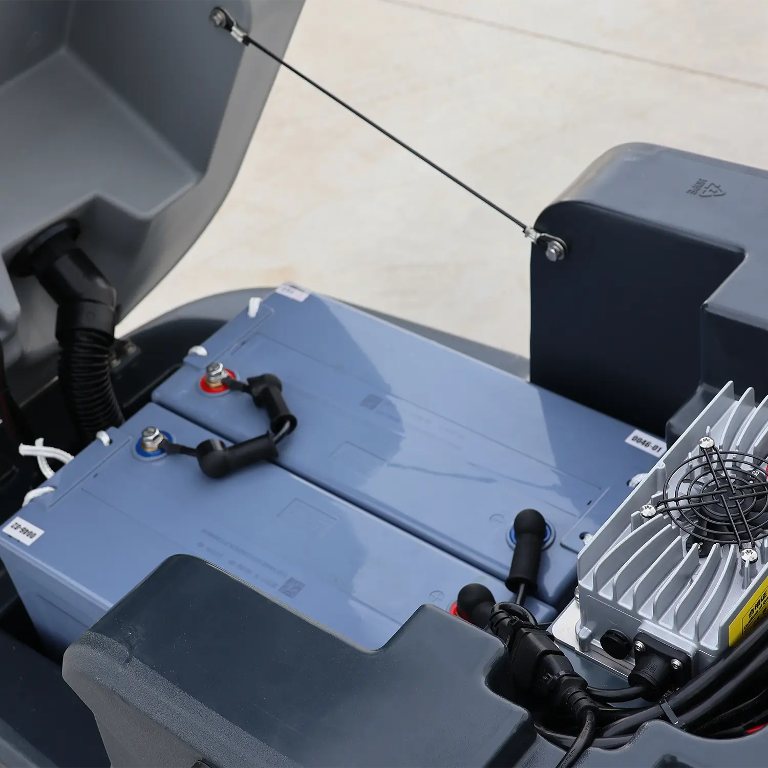 Equipada con dos cepillos de 350 mm, la B700 alcanza un ancho total de fregado de 700 mm, lo que permite reducir los tiempos de trabajo manteniendo un alto nivel de maniobrabilidad. Su arco de aspiración de 920 mm garantiza un secado eficaz incluso a velocidades constantes, dejando el suelo listo para el tránsito inmediato.